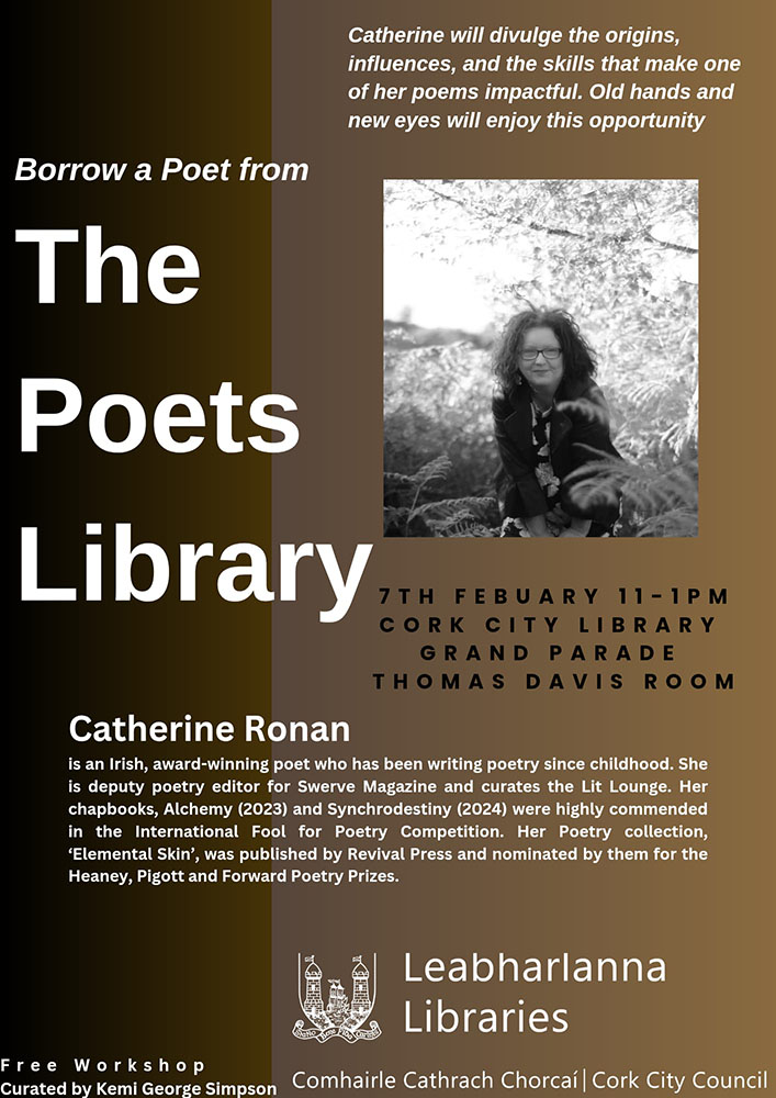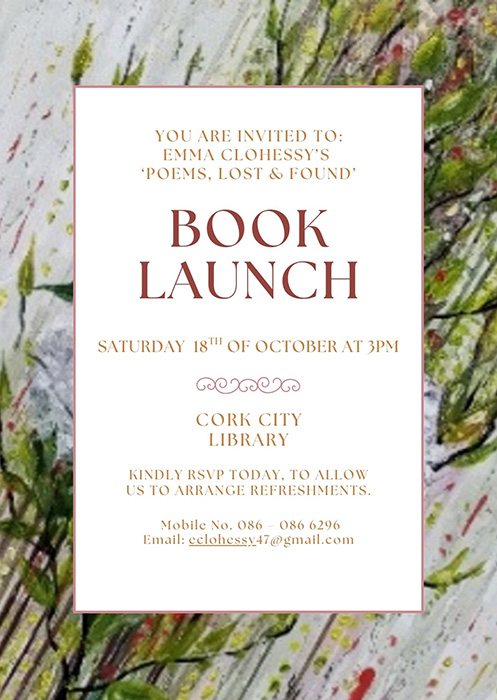 If you have a literary event in Cork (workshop, reading, open mic etc.) that you would like us to list here, please contact us.